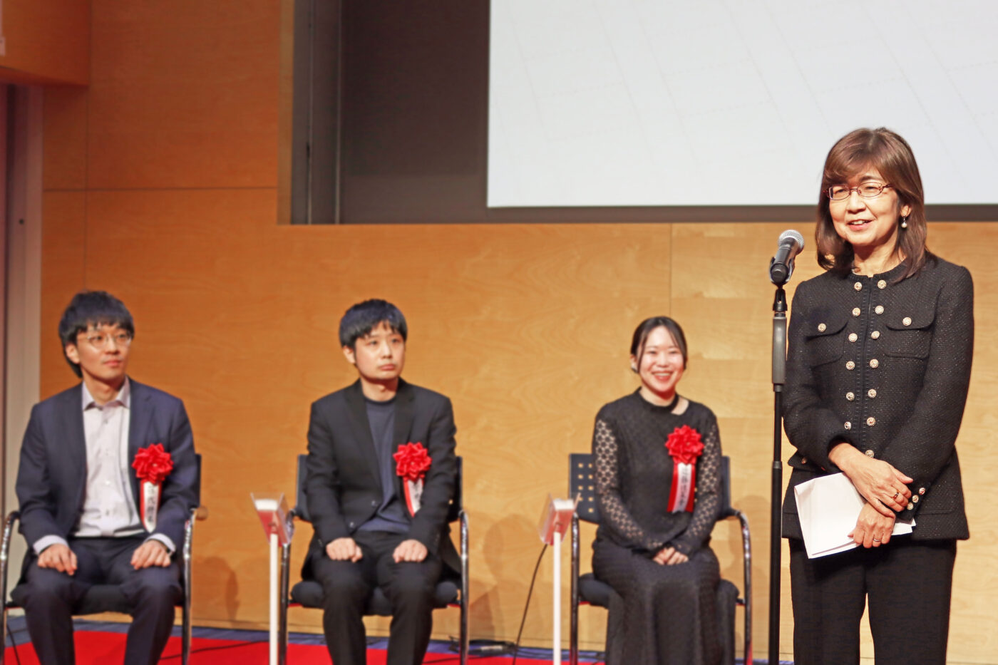長年、創作を続けてきたんですけれども、プロの方に自分の書いたものを読んでいただけるというのは、本当に私にとって夢のまた夢のような出来事でした。また、今日ここへ来て、自分のシナリオを読んでくださった方が確かにいるんだということを改めて実感できて、感謝と嬉しい気持ちでいっぱいです。いただいた賞を励みに、今後も精進していきたいと思います。