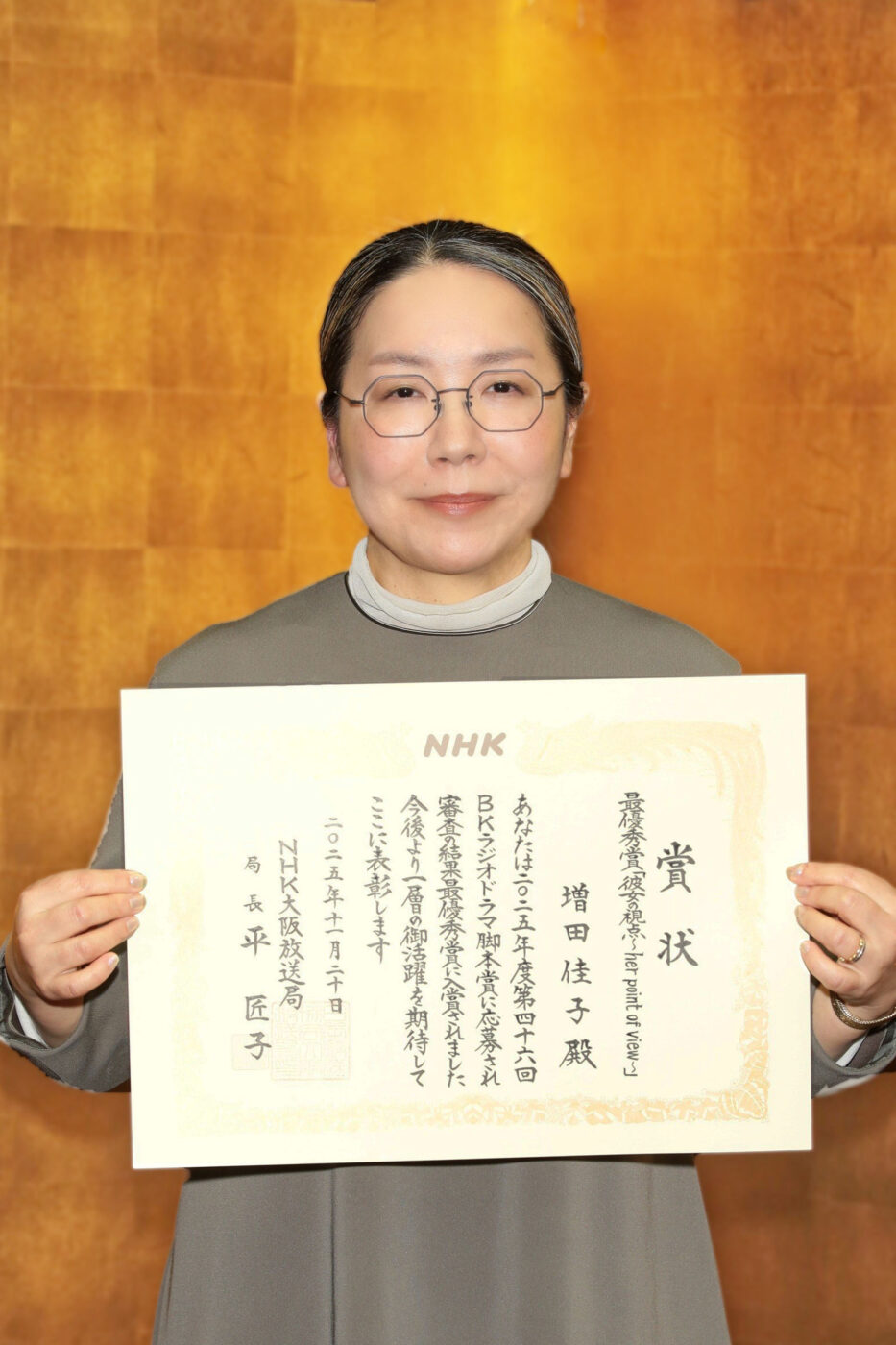 2025年度第46回 BKラジオドラマ脚本賞(応募総数151篇)にて、『彼女の視点~her point of view~』で最優秀賞を受賞された増田佳子さん。